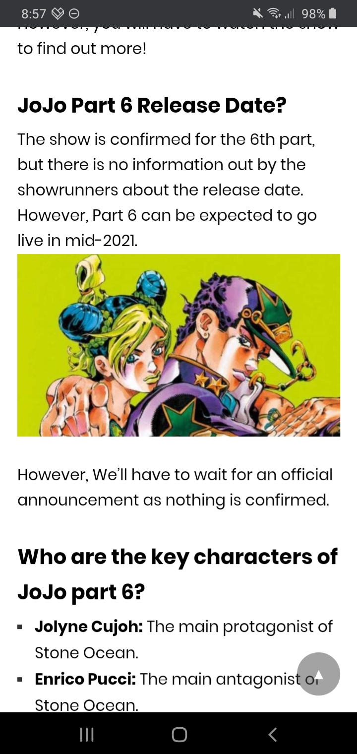 Jojo part 6 anime confirmed. But we have not got any updates regarding its release date. The sixth arc of the manga series was given an anime adaptation as anime television series titled jojos bizarre adventure part 6 jolyne cujoh. The plot of the series revolves around the mysterious adventures of joe star family. Stone ocean is not confirmed.